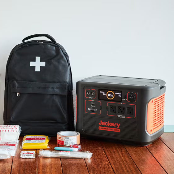 Jackery ポータブル電源 300 PlusとJackery SolarSaga 100W ソーラーパネルのセットです。コンパクトサイズなので、防災リュックに入れてすぐに持ち出せます。