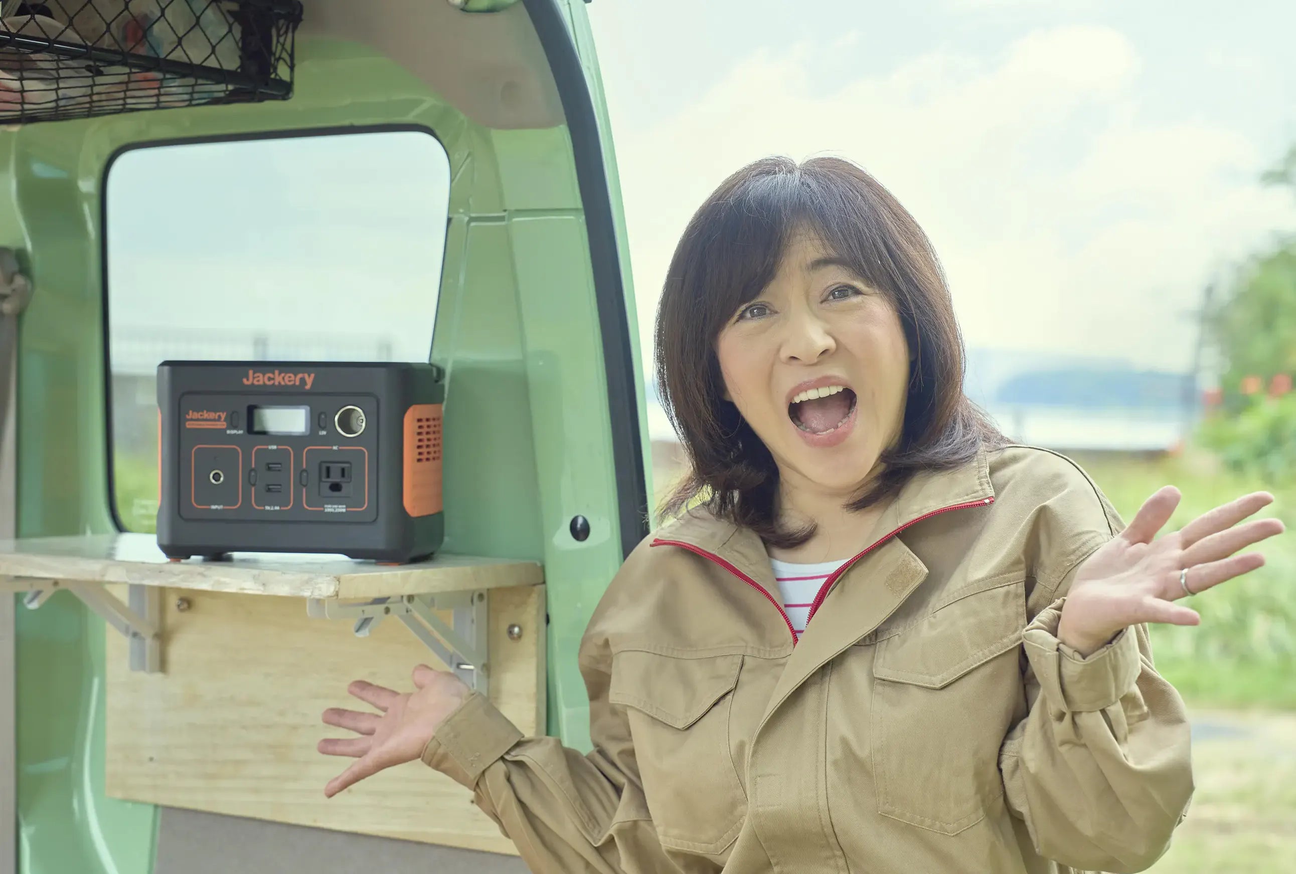 テレビや舞台などの華やかな世界で、タレント・女優として活躍中の松本明子さん。実は副業として経営しているという軽キャンピングカーのレンタル事業『 オフィスアムズ』と、そこで活躍する Jackery のポータブル電源についてお話をうかがいました。
