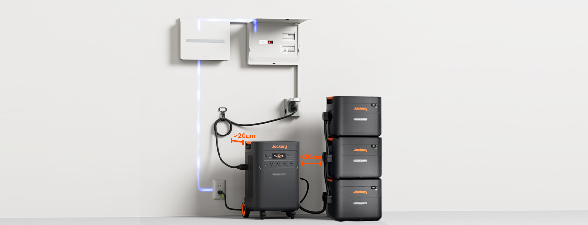 Jackery ポータブル電源 5000 Plusは分電盤との接続により、電力会社からの電力供給が遮断された瞬間に10〜200ミリ秒*²以内でポータブル電源へ自動で切り替わり、停電時も持続的な電力を供給します。