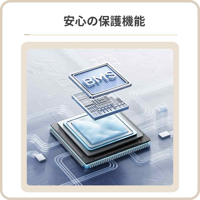 長寿命で信頼性の高いリン酸鉄リチウム電池セルを採用。4000回の充放電でも容量70%を維持できるため、長期間安心してご利用いただけます。高耐久設計で、長期間の使用にも十分耐えられる性能を提供します。