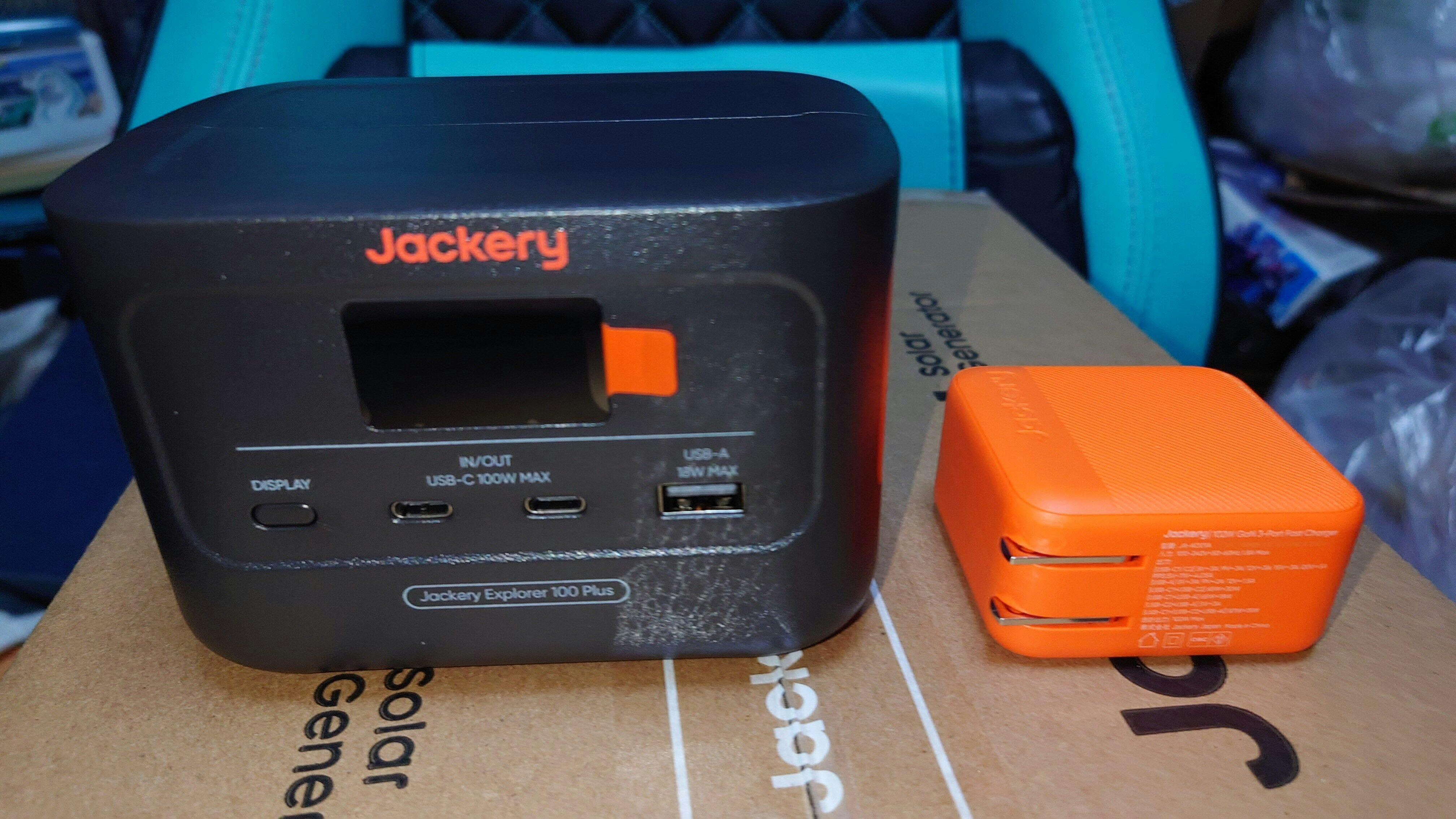 Jackery Explorer 100 Plusは、最大128Wで、USB-Cを2口、USB-Aを1口備えているため、複数のデバイスを同時に充電することができます。容量が99Whのため飛行機にも持ち込めます。手の平に乗るほど小型なので、ビジネスやアウトドアでも手軽に持ち運べます。