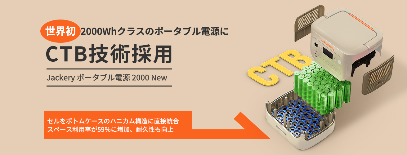 世界初、2000Whクラスのポータブル電源にCTB(セル・トゥ・ボディ)技術を採用。セルをボトムケースのハニカム構造に直接統合する方式(CTB構造)により、スペース利用率が増加し、エネルギー効率、強度も従来の構造よりはるかに高くなりました。