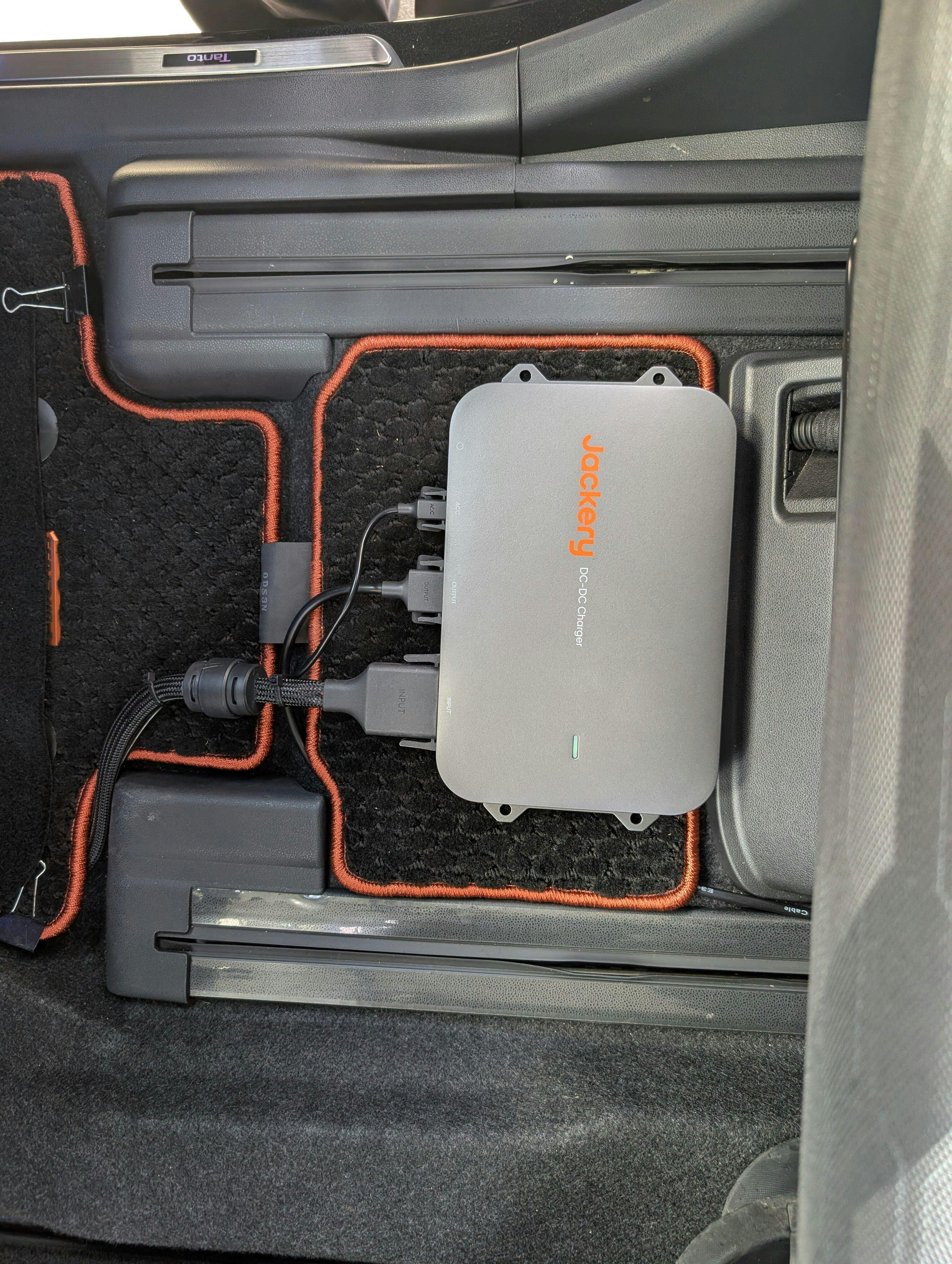 待望のドライブチャージャーを付けてみました。本体は運転席の下以外とキレイに納まりました。アイドリンク中でも300W以上出力してたので期待してます。