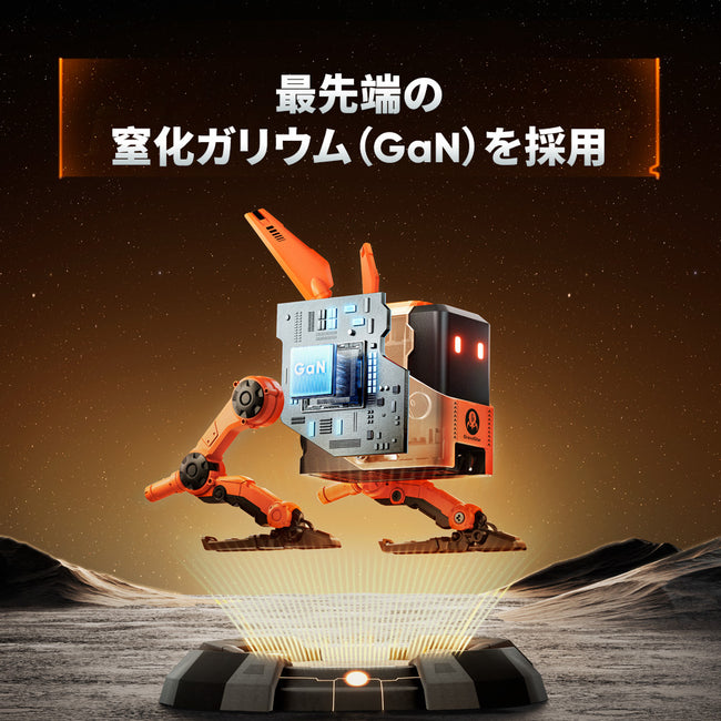 本製品は、窒化ガリウム(GaN)技術を採用。高出力&コンパクトながら、本体がほとんど熱を持たず、安全性にも配慮されています。設置スペースを取らず、持ち運びにも最適です。