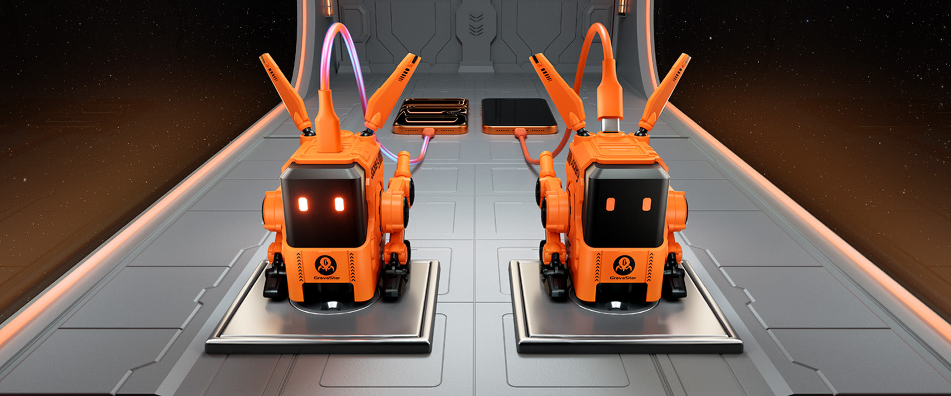 メカロボットをモチーフとしたデザインは、ユニックなUSB AC充電器として、ご自宅やワークスペースにアクセントを加えます。