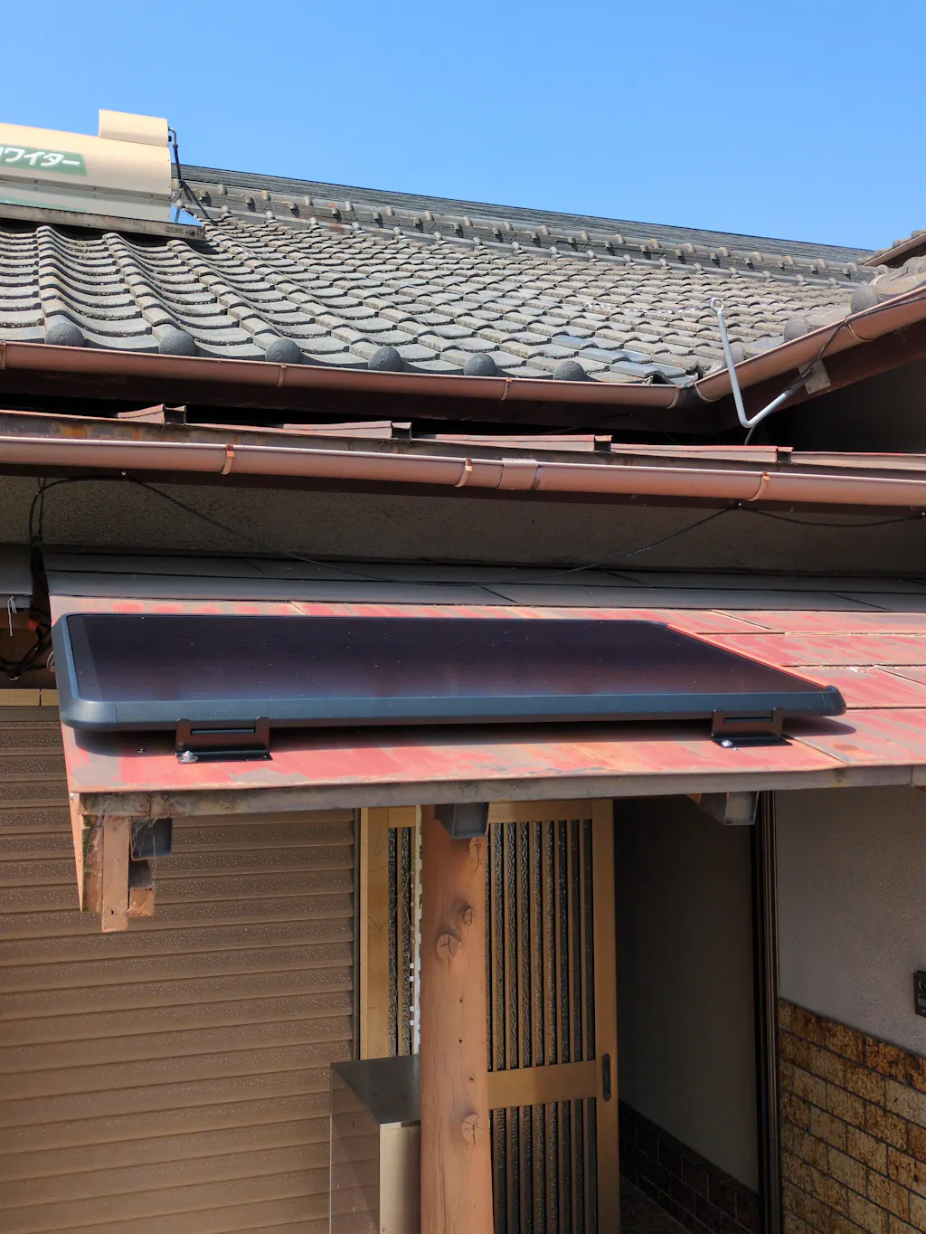 折りたたみ式以外にもパネルの常設をしたく注文しました。パネルの表面やつくりからして耐候性は非常に高そうです。付属の取り付け金具で木の板に固定し、自宅の屋根に設置しました。パネルを出し入れする必要が無く充電が非常に楽になりました。