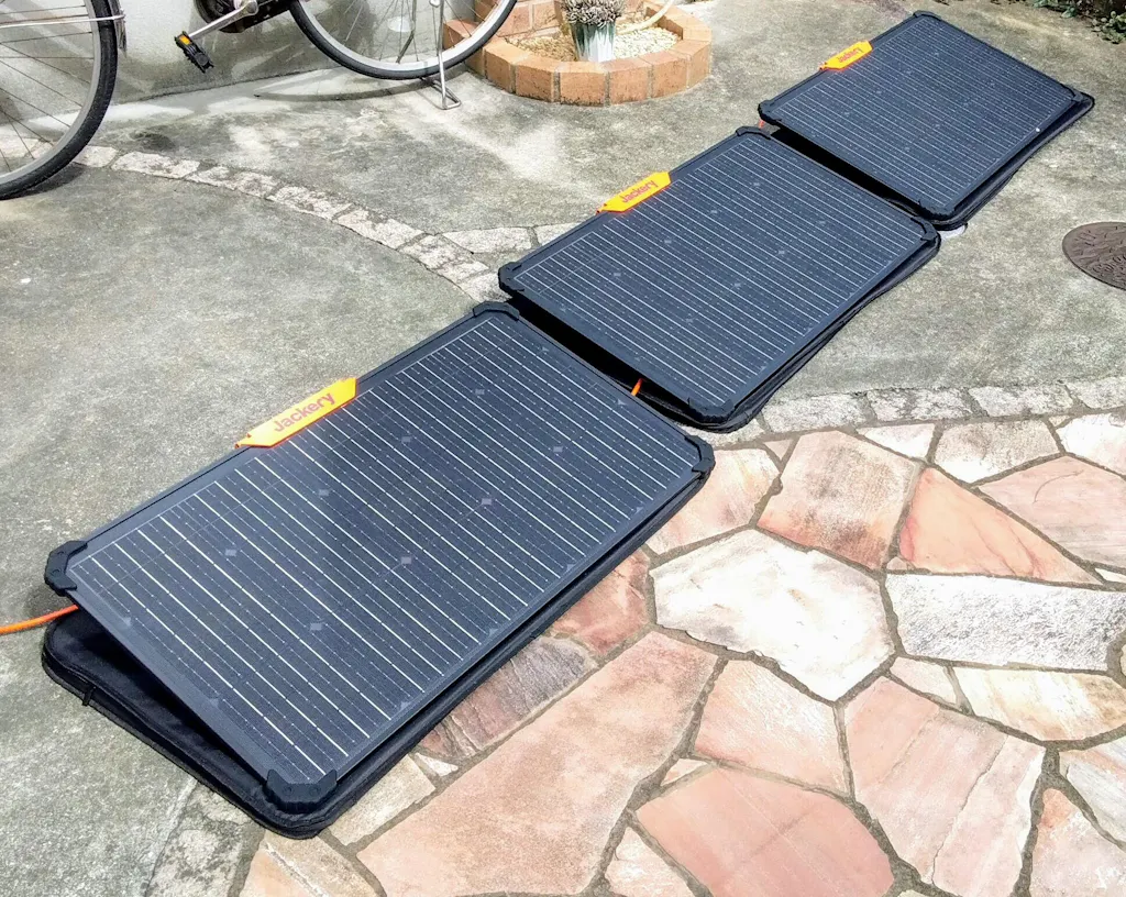 「Jackery SolarSaga 80」は、ソーラーパネルの表面だけでなく、裏面からも発電を行うことで従来のソーラーパネルよりも発電効率が25%アップ。日照時間が短い場合でも、効率的な発電が行えるようになりました。また本製品は最大で3枚のソーラーパネルを並列接続することができ、さらにJackery SolarSaga アダプター(Pro/Plus専用)