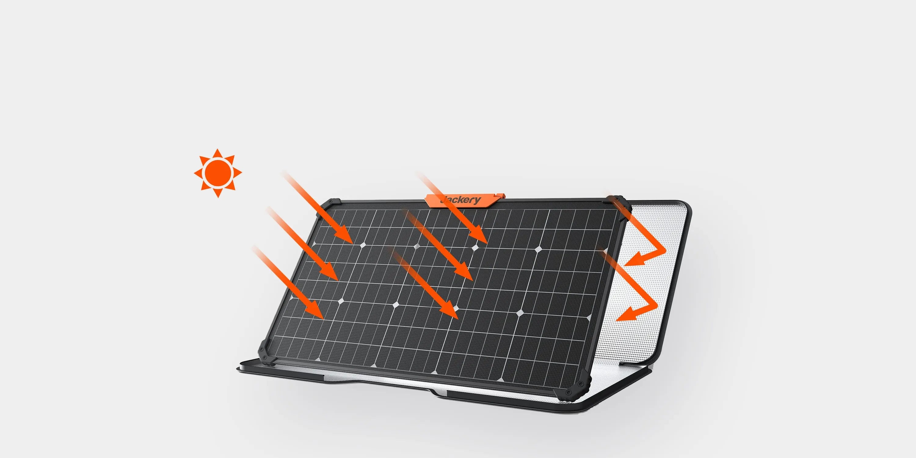 「Jackery SolarSaga 80」は、ソーラーパネルの表面だけでなく、裏面からも発電を行うことで従来のソーラーパネルよりも発電効率が25%アップ。日照時間が短い場合でも、効率的な発電が行えるようになりました。また本製品は最大で3枚のソーラーパネルを並列接続することができ、さらにJackery SolarSaga アダプター(Pro/Plus専用)