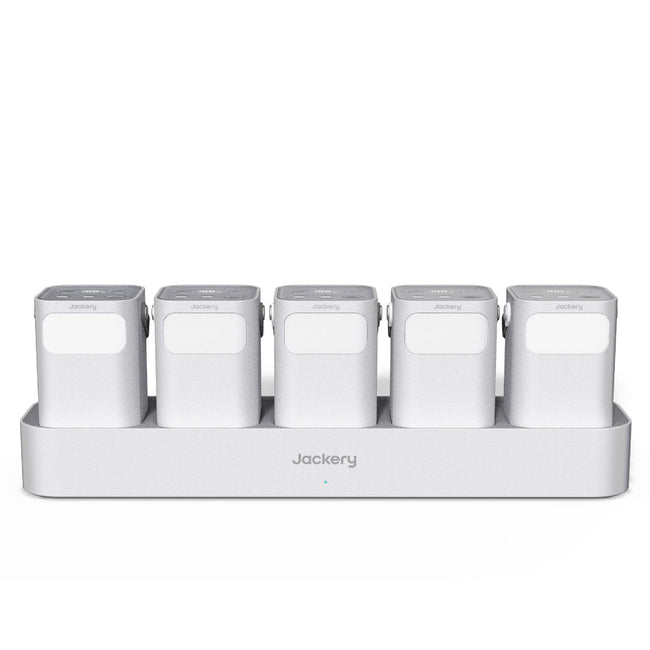 教育現場のタブレットの充電忘れやフリーアドレスのオフィス、カフェなどで、手軽に持ち運べるモバイルバッテリー5台と充電ステーションのセット商品です。
